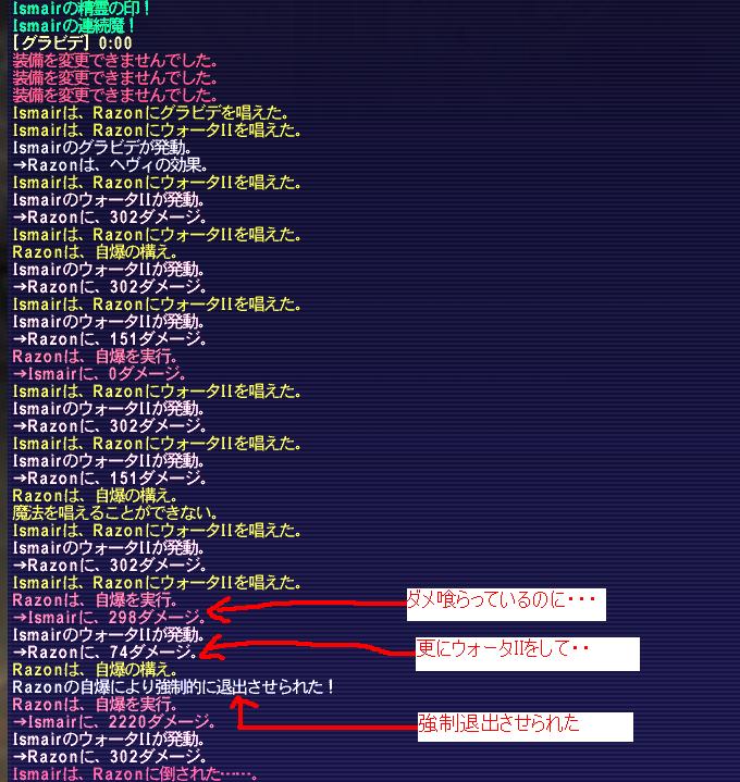 広場に入ってから グラビデ → 自爆範囲内にいながらウォータII連打