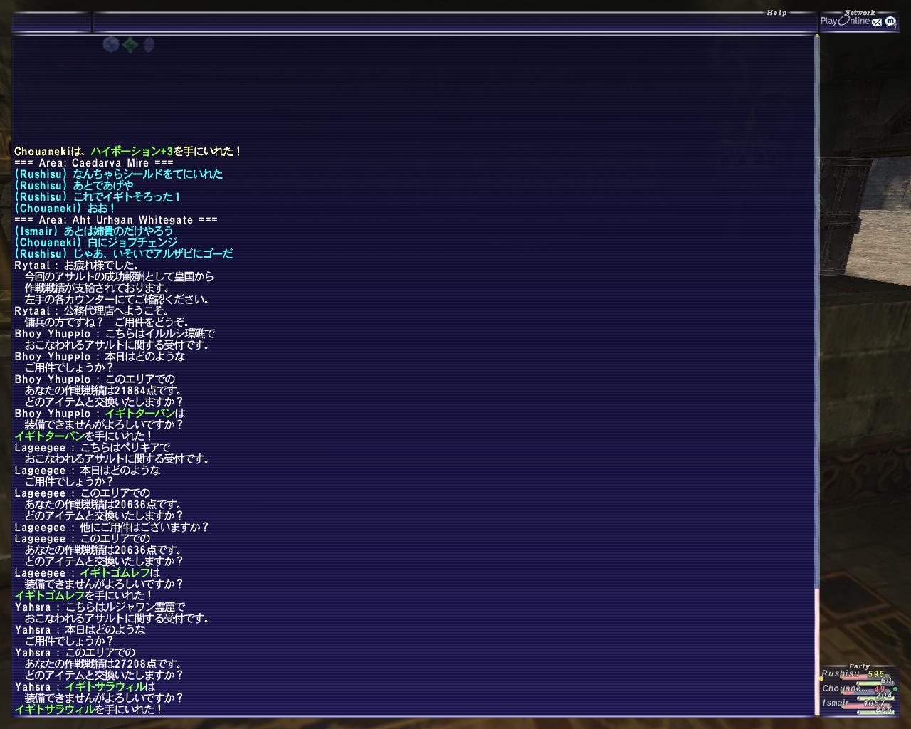 1枚目 ウルガランENM 雪こんこん 昼15時に突入 3ヶ月ぶりに装備でた。 2枚目 アットワENM 巨人の貝塚 17時突入 数はでていたのでブラオまでは近い。