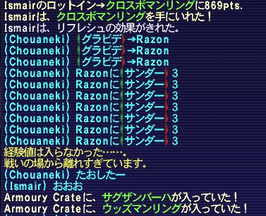 次はソジャ異界の口 タゲが途中で変わったのだが回避目的のサポシのタゲ取りができず。暗闇の術が2回連続レジってのが痛すぎた。タゲ取りのために被ダメはハイポで回復するようにする。