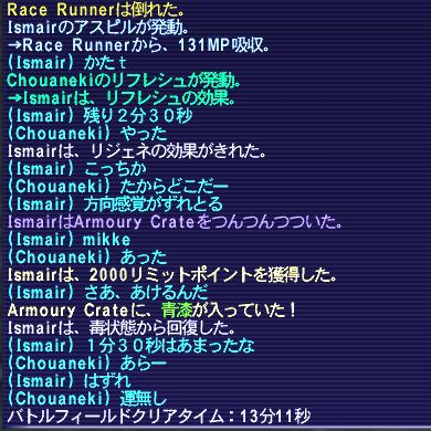 慣れてきたためにずいぶん時間が余るようになったので次からは3月8日でトリガーNMになったあたりのものをやってみようとおもっています。